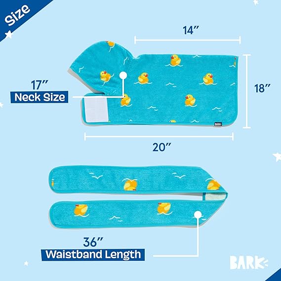 Barkbox Dog Bathrobe Fast Drying with Hook and Loop Closure & Wrap Tie Snuggle, Cute Dogs Clothes, Easy to Clean, Machine Washable, Dog Coats and Tumble Dry Low - Rubber Duck, Large