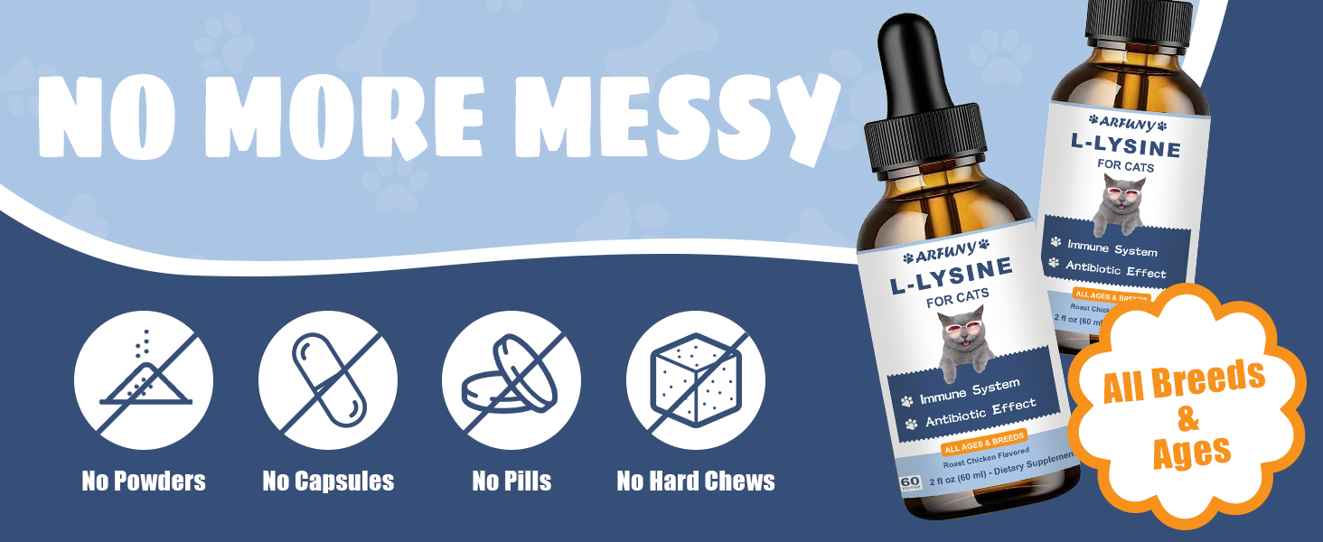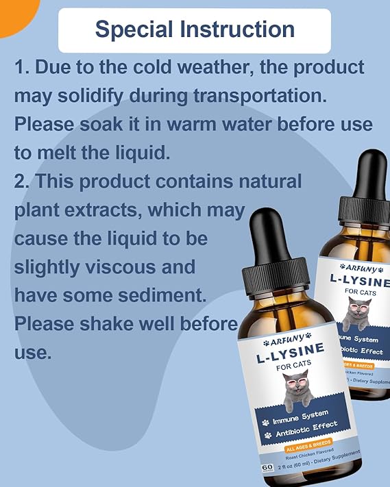 - No More Worries: When using our lysine liquid for cat, you don't have to worry about messy powders, annoying capsules, tablets, or hard-to-chew solids. They can be used directly or mixed with food, water, or milk, and even fed directly to your cat