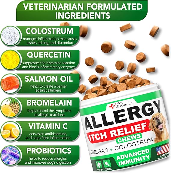 Dog Allergy Relief Chews - 170 Dog Allergy Chews - Itch Relief for Dogs - Anti Itch for Dogs - Dry & Itchy Skin - Allergies & Immune Support Supplement, Omega 3 Fish Oil, Colostrum - Made in USA