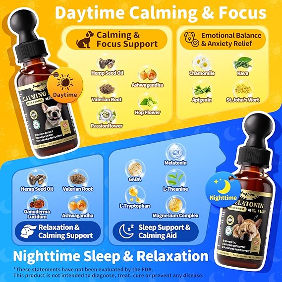 - Hemp & Melatonin Dog Wellness: POPPAW’s daytime calming treats for dogs feature Hemp Seed Oil for skin and joint health, while the nighttime formula uses melatonin for dogs to regulate sleep cycles. Together, they provide complete anxiety relief for dogs, keeping them calm by day and rested by night.