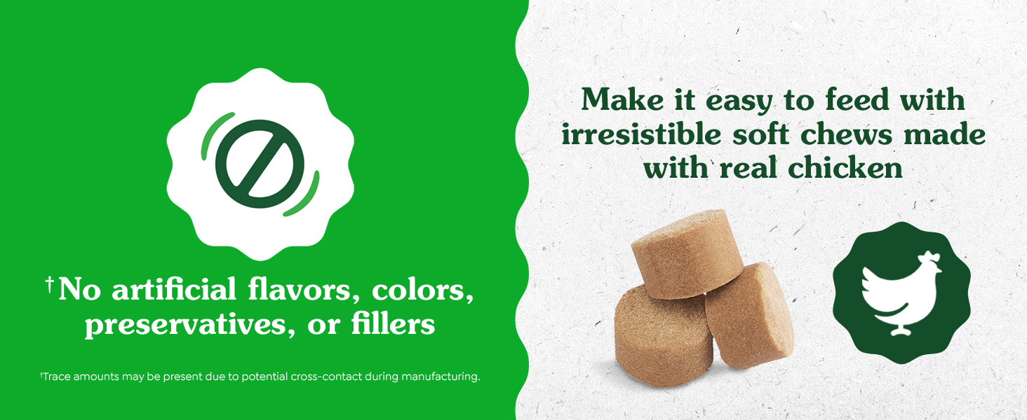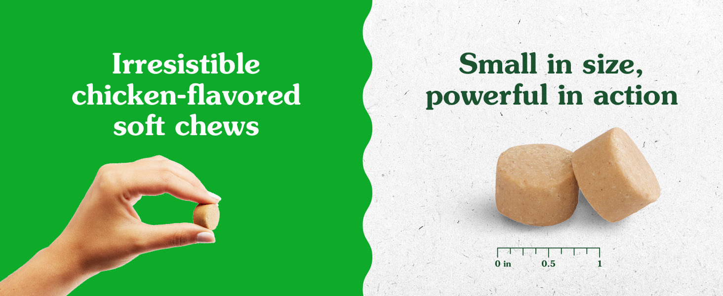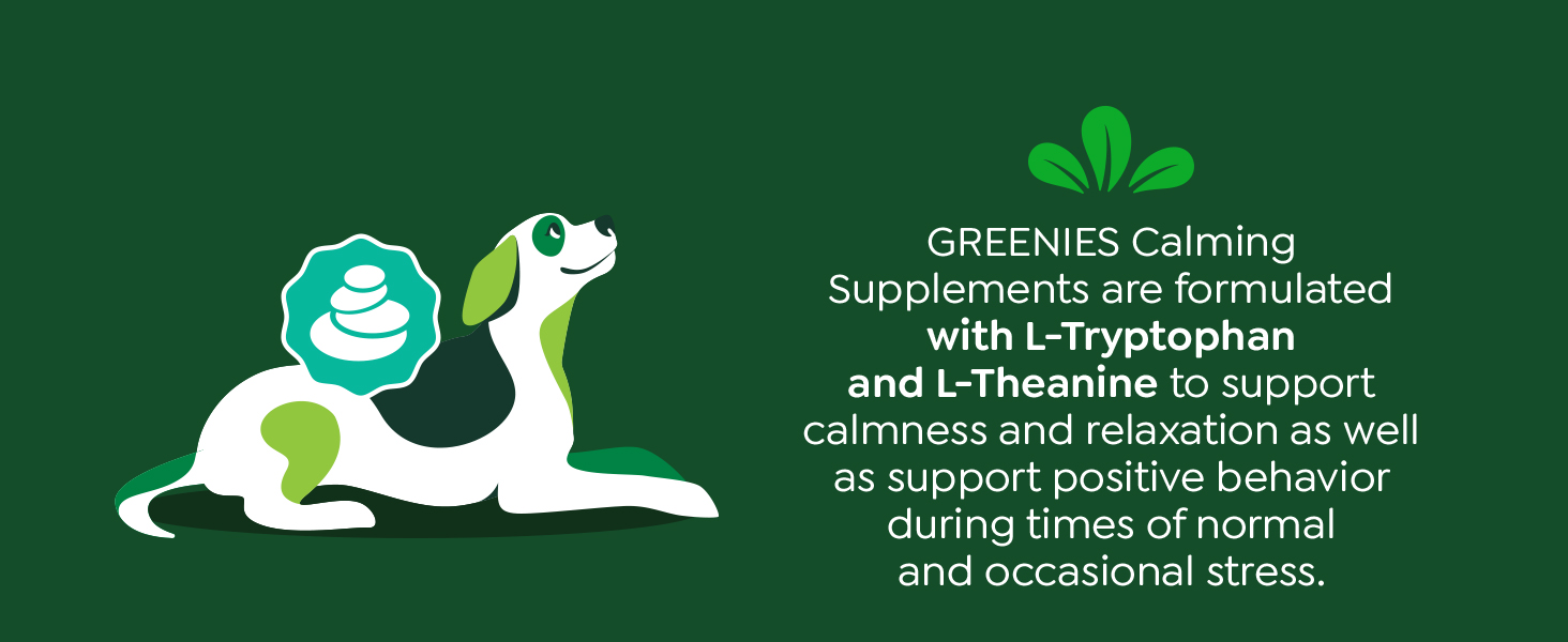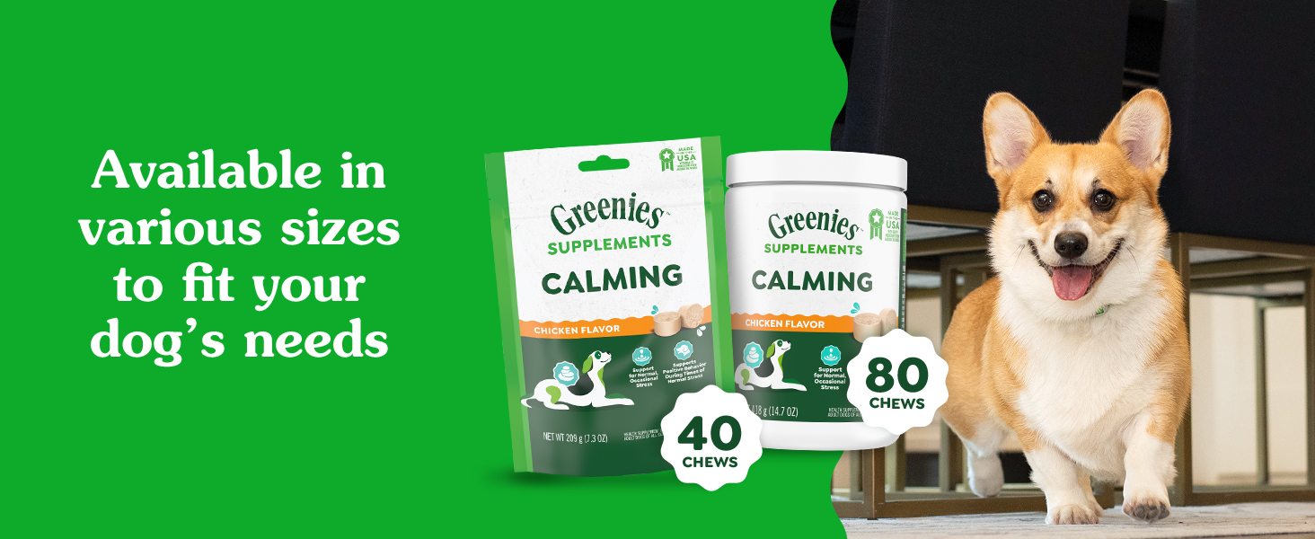 From the makers of vet recommended Greenies Dental Treats, you can provide calming support to your furry friend with Greenies Calming Supplements. These supplements are formulated with L-Tryptophan and L-Theanine to support calmness and relaxation as well as support positive behavior during times of normal and occasional stress. Greenies Calming Supplements are also crafted with real chicken for irresistible taste and no artificial flavors, preservatives, or colors*. Made in the USA with quality ingredients from around the world, formulated by a team of PH.D animal nutritionists, and Contains the National Animal Supplement Council Quality Seal, you can be sure you’re giving your canine companion a quality supplement they will love. (*Trace amounts may be present due to potential cross-contact during manufacturing)