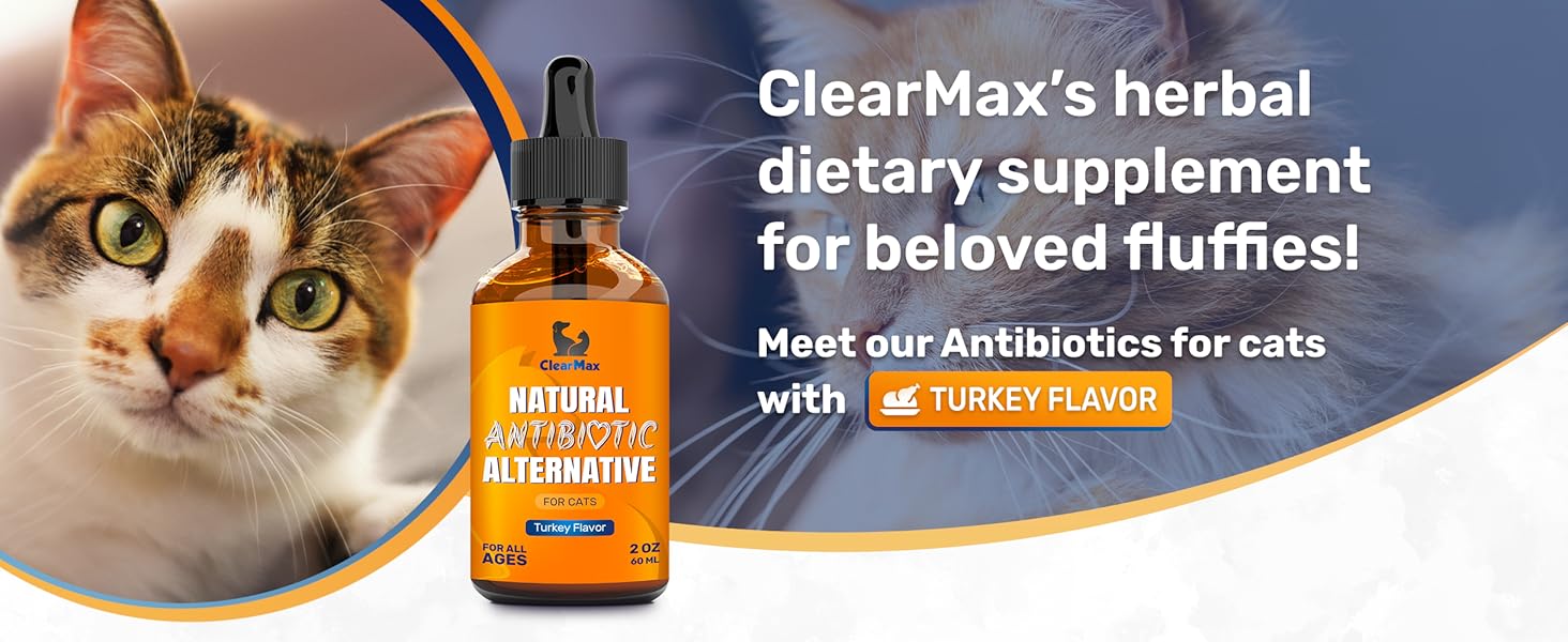 - FOR ALL AGES AND BREEDS: ClearMax natural Antibiotics for cats are liquid supplements suitable for both small and large breeds, as well as kittens and adult cats.