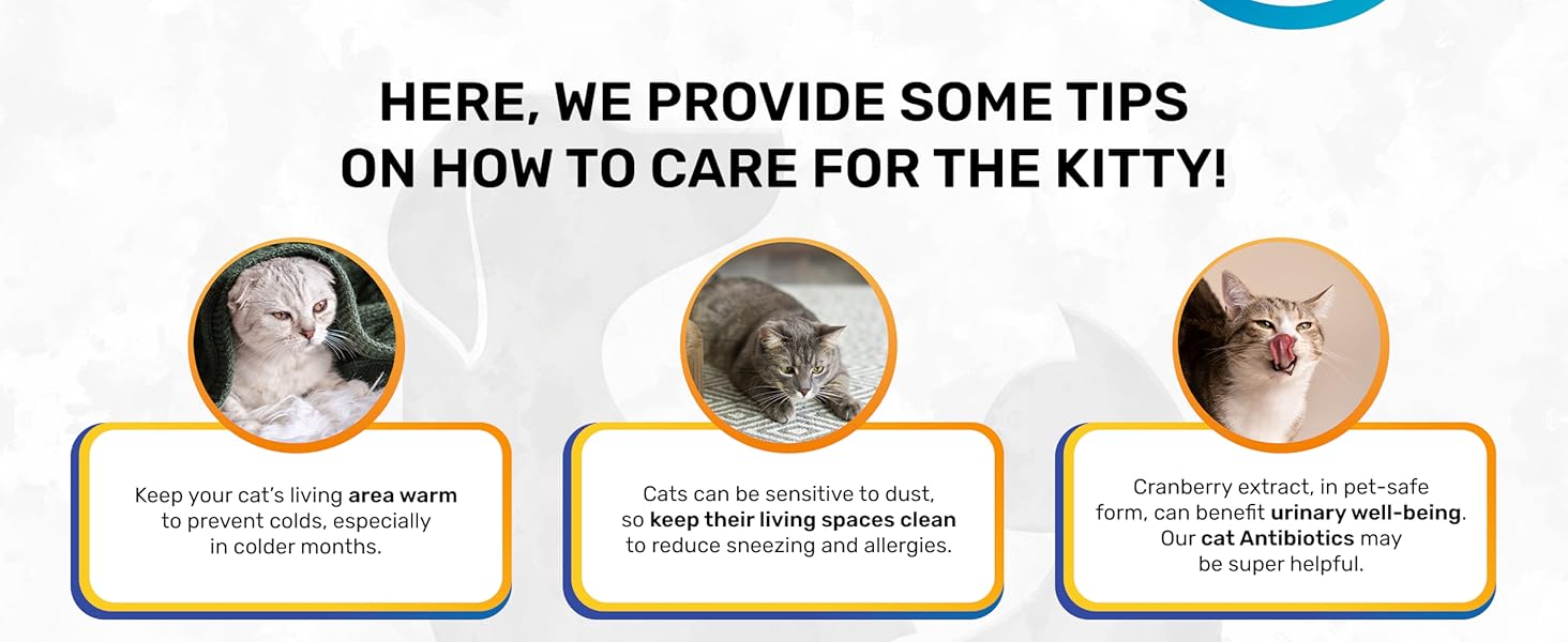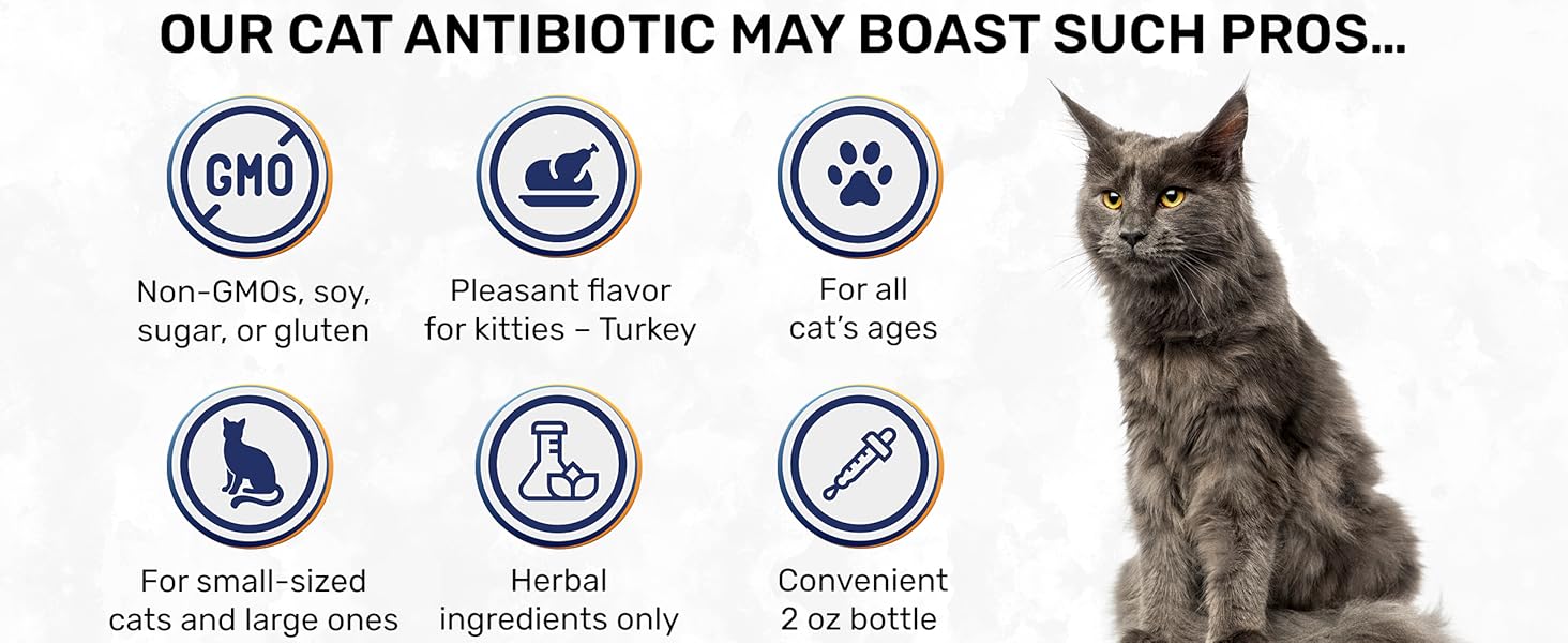 - COMPLEX ACTION & SUPPORT: Does your cat have a cough, allergy, or UTI? This Antibiotic for cats may help a pet’s body work well and provide a great appetite and cheerful mood!