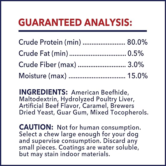 100% Made in the USA following strict GFSI food quality standards, Pet Factory's 100% American Beefhide chews provide unsurpassed quality combined with full flavor. Our 100% American Beefhide chews contain more and thicker fibers than any other rawhide dog chew. The result is a longer lasting chew with great American bred taste that will not only satisfy your pets, but also helps promote great oral hygiene by removing tartar and plaque. Available in Natural or a variety of flavors. 100% American Beefhide chews give dogs what they want and let you know you're providing the best possible chew for your pet.
