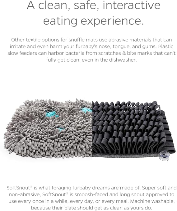- NON-HAZARDOUS - With our proprietary SoftSnout material, Forager allows for furbabies of all ages to use their natural foraging instincts without the worry of scratched-up noses, choking hazards, or bloody & irritated snouts. Designed with your furbaby in mind, this slow feeder dog bowls has extremely soft, non-irritating, or damaging "trees" that keep your furbaby injury-free, unlike similar snuffle mats for dogs.