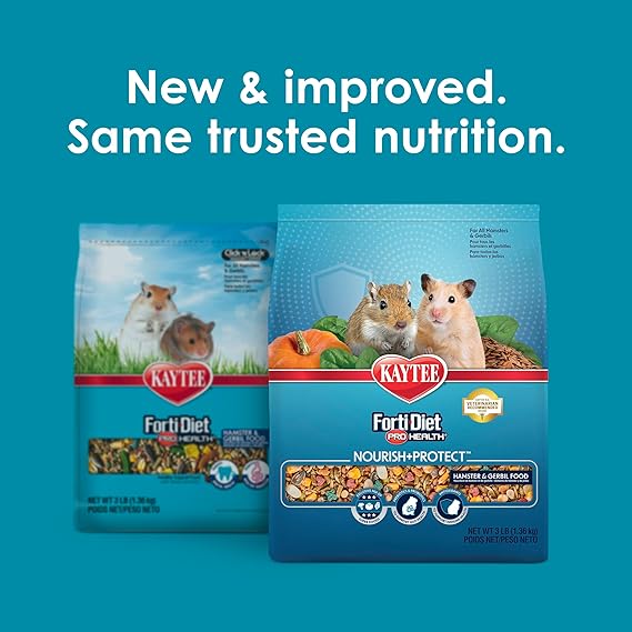 Kaytee Forti-Diet Pro Health Nourish+Protect Hamster and Gerbil Food, Comprehensive Nutrition Backed by Science, Digestive Health, Immune Support, 3 Pounds