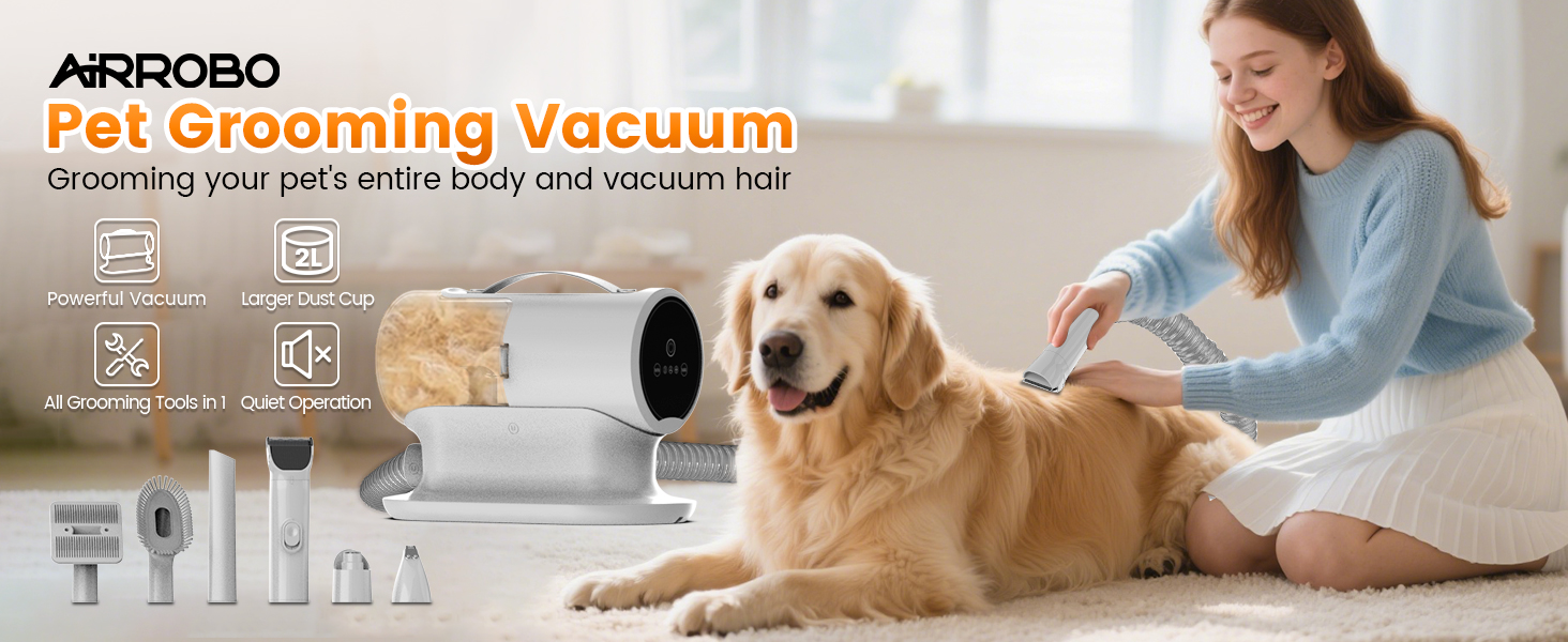 AIRROBO Dog Grooming Vacuum Kit,12000Pa Strong Pet Vacuum for Shedding,Grooming Hai,Quiet,PG100,2L Large Capacity
