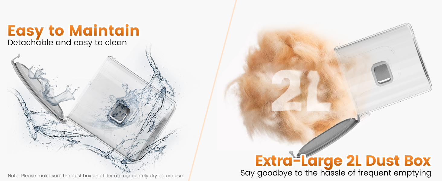 - LARGE CAPACITY DUST CUP-Our dog grooming vacuum for shedding comes with a large dust cup, which is large enough for even large dogs, there is no need to stop and empty it frequently while grooming and trimming, and the dust cup is so easy to empty- just pull the quick-release snap on the dust cup for touch-free emptying.