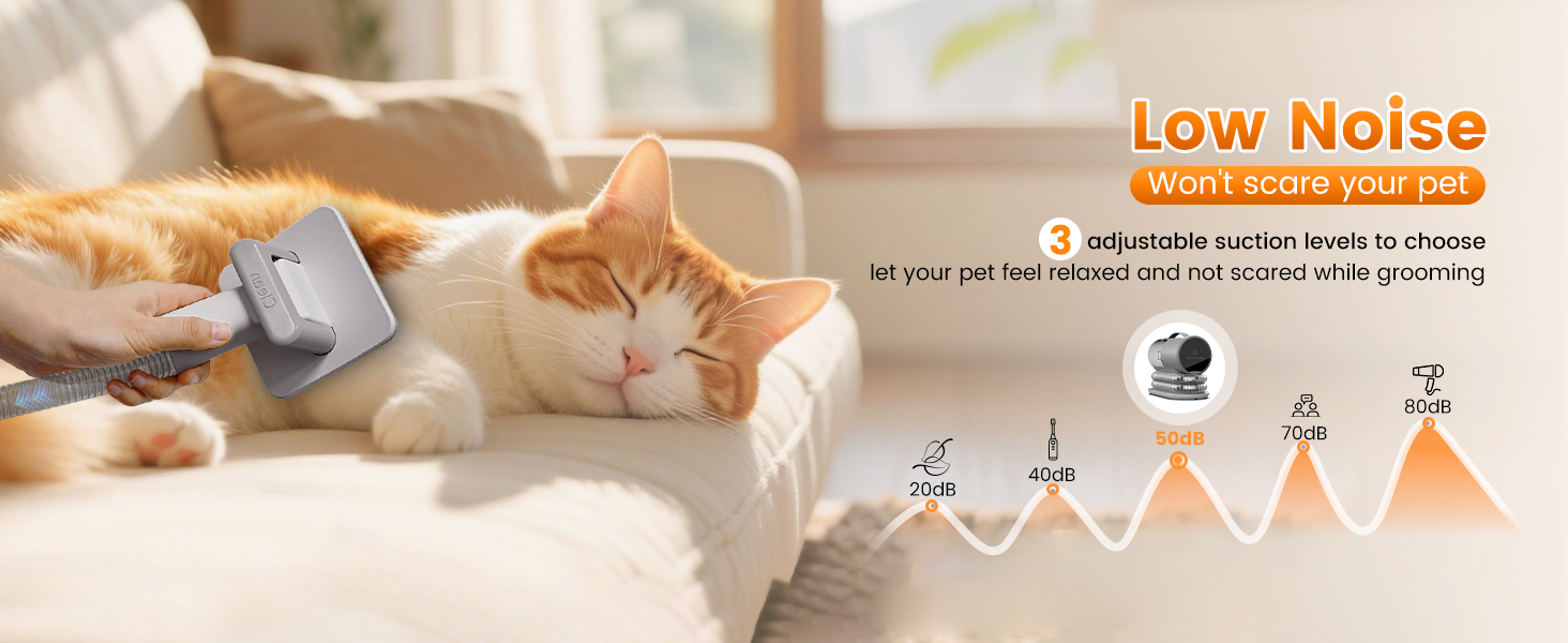 - LOW NOISE DESIGN & 3 ADJUSTABLE SUCTION LEVELS- Your pet will enjoy the dog hair vacuum. the lowest noise level is below 50dB, quieter than the vacuum cleaner, it won't scare your pet. it has 3 adjustable suction levels, and you can adjust it as per the comfort and size of your dog.