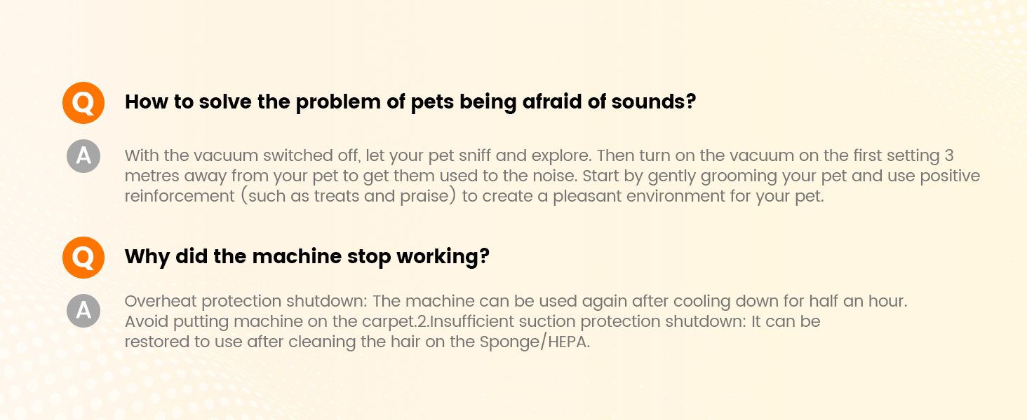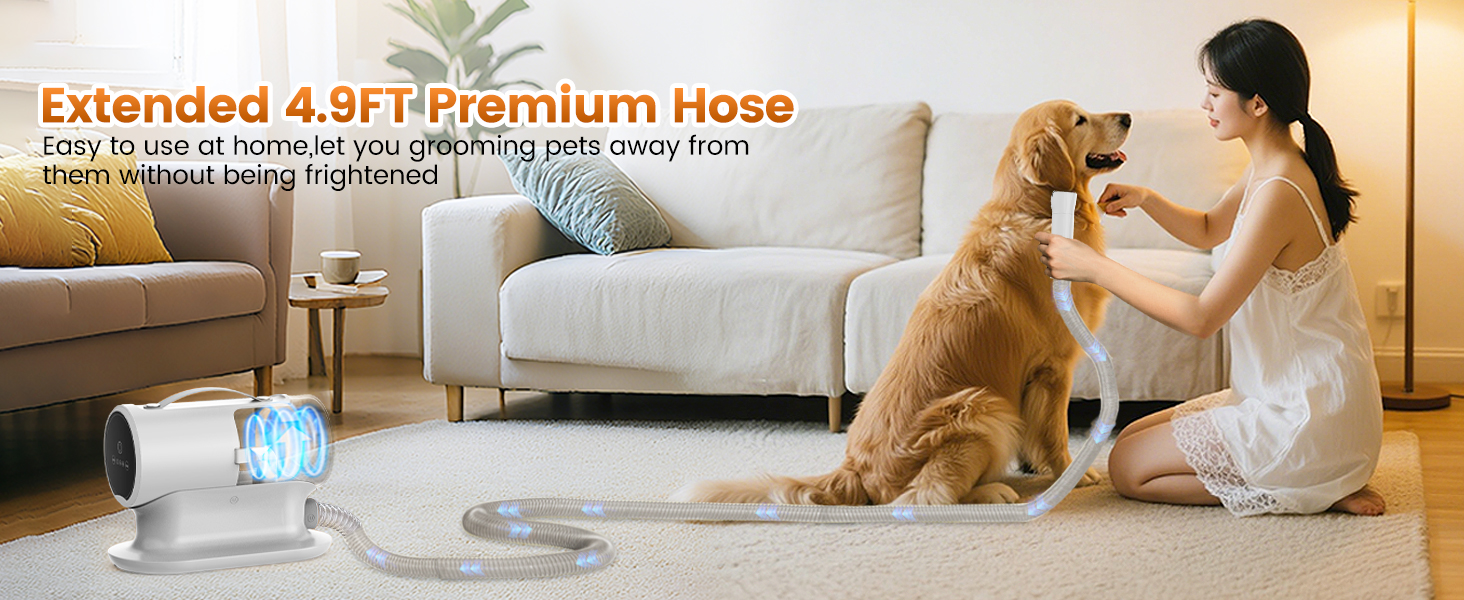 - 4.9FT DETACAHLE HOSE - 4.9FT(1.5m) extended hose can give you more flexibility to clean hard-to-reach areas and allow you to keep your pets far away from the motor noise, making it more suitable for sensitive or large pets. and the detachable design allows you to remove and replace it.