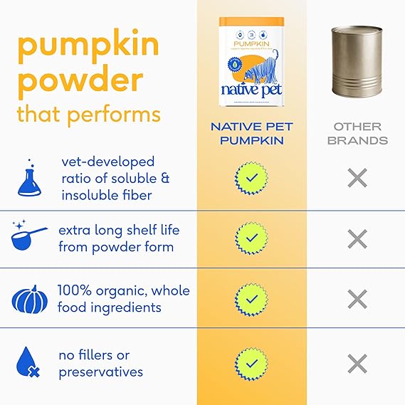 Native Pet Pumpkin for Dogs - Organic Powder Pumpkin Puree Dog Food Toppers -Rich in Fiber Supplement Powder Helps with Digestion, Nutrient Absorption, Diarrhea, Constipation & Upset Stomach-30 Scoops