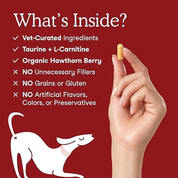 - No fillers: Our powerful blend of taurine powder, L-carnitine, CoQ10, vitamin E, and organic hawthorn berry helps your pet’s cardiovascular function and strength, thus helping your pet become more active, energetic, and best of all, more playful