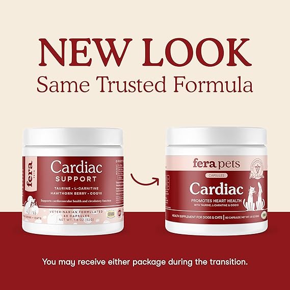 Fera Pets Cardiac Support - Cat & Dog Heart Supplement with Taurine, L-Carnitine, & CoQ10 - Promotes Normal Circulation and Heartbeat - 120 Capsules