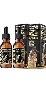 Busters Large 60ml Bottle, 2mth Supply, Organic Hemp Oil for Dogs and Pets, 555000 Max Potency, Made in USA Miracle Formula, Perfectly Balanced Omega 3 6 9 Joint Relief, Calming