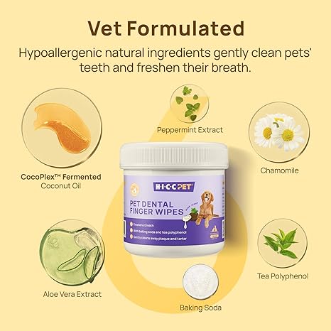 HICC Pet Teeth Cleaning Wipes for Dogs & Cats, Vet-Recommended Remove Bad Breath & Plaque & Tartar Buildup Dog Finger Toothbrush Wipes, Dog Tooth Brushing Kit Remove Stain & Gum Care for Small Animal