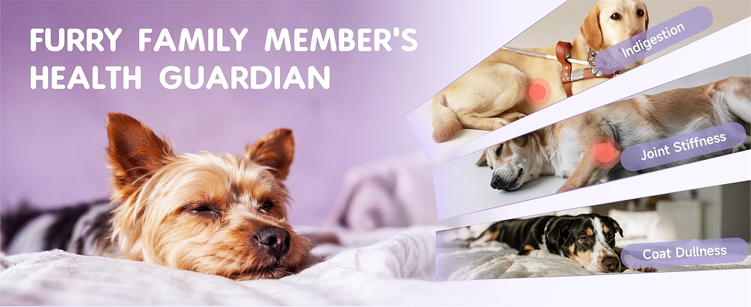 - Multi-functional Health Support : Our collagen drops for dogs are designed to support your dog's joint mobility and reduce stiffness, ensuring they can run, play, and jump with ease. The collagen content also strengthens your dog's skin and coat, leaving their fur shiny and healthy. Additionally, dog collagen supplement aids in maintaining better digestive health and boosting their immune system for overall well-being