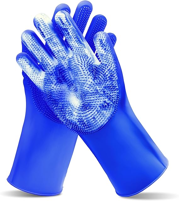Pet Grooming Gloves—Heat Resistant Dog Washing Gloves with High-Density Teeth, Dog Bath Scrubber with Enhanced Five Finger Design, Silicone Gloves for Dogs and Cats Bathing, Massage (Blue)