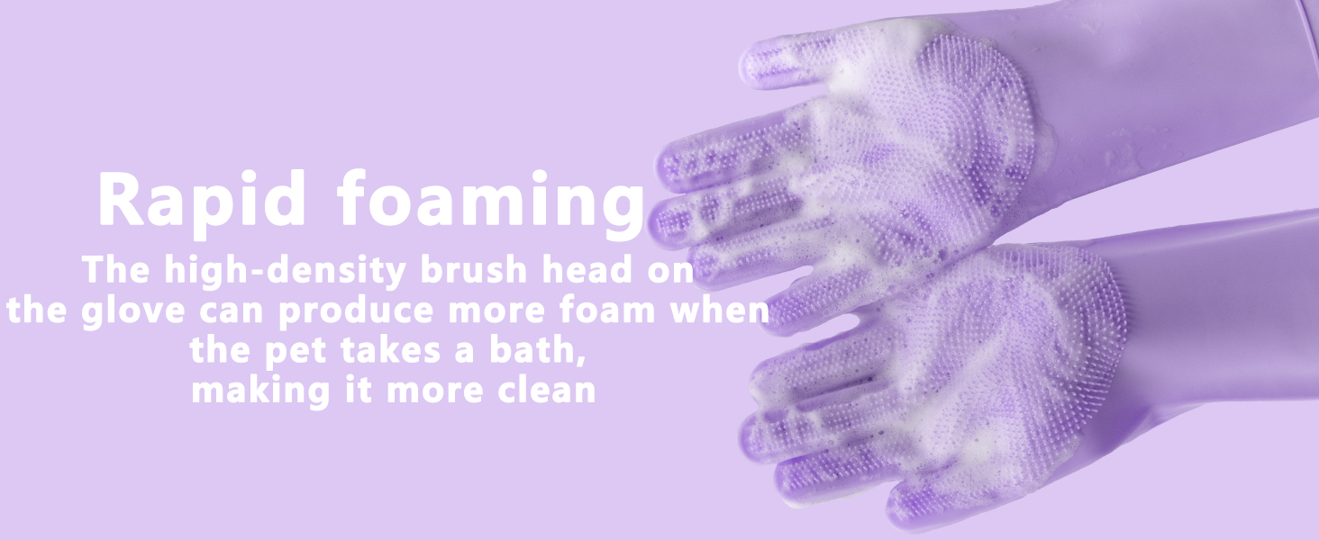 - Double Sided Cleaning: This Pet grooming glove can be cleaned on both sides. One side has a high-density brush head, which can produce more foam when the pet takes a bath. It can deeply clean the pet's hair, maintain the cleanness of the pet's hair. There are some small particles on the other side, which can clean and touch the pet's surface hair. The double-sided cleaning method allows you and your pet to enjoy a happy bath time