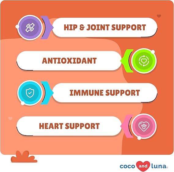 - Turmeric for Dogs - Coco and Luna Turmeric supplement contains Curcumin which is an antioxidant that supports joint, hepatic, gastrointestinal and cardiovascular health.