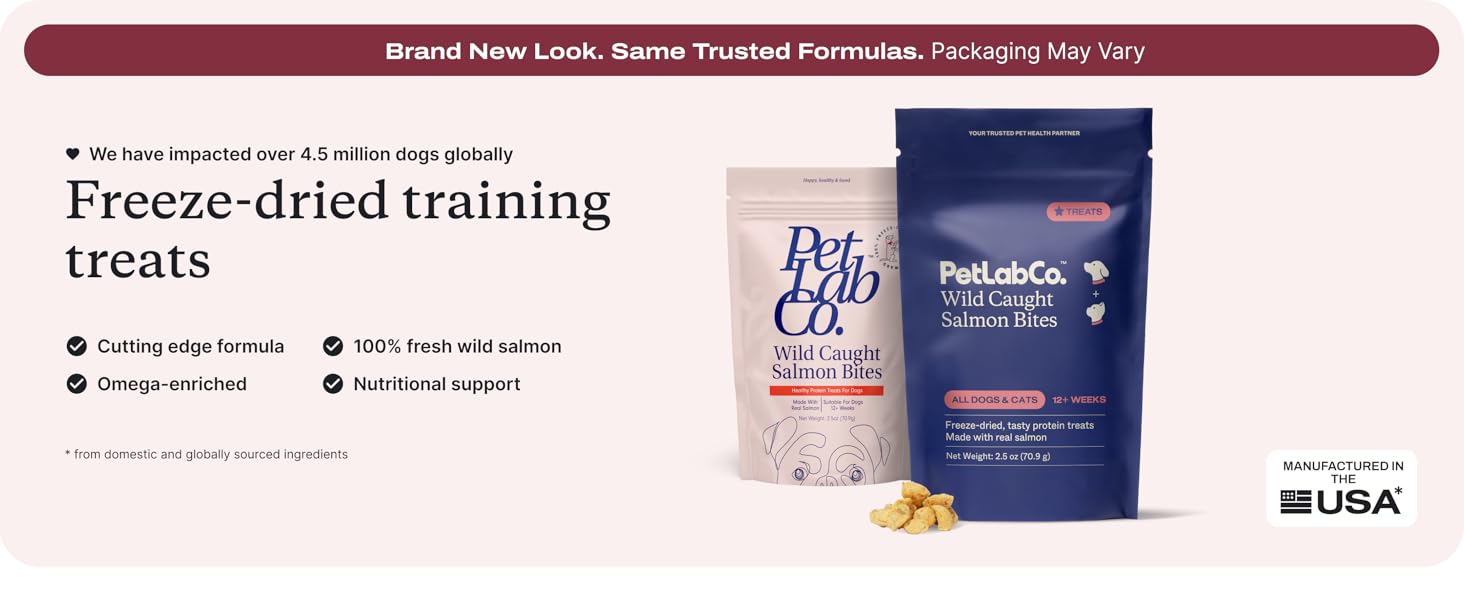 - Invest in your Dog’s Health - Want a treat packed with fatty acids, vitamins & minerals? PetLab Co.’s Wild Caught Salmon Bites are the product for you. Subscribe and save today to join over 4 million pets in the PetLab Co. family