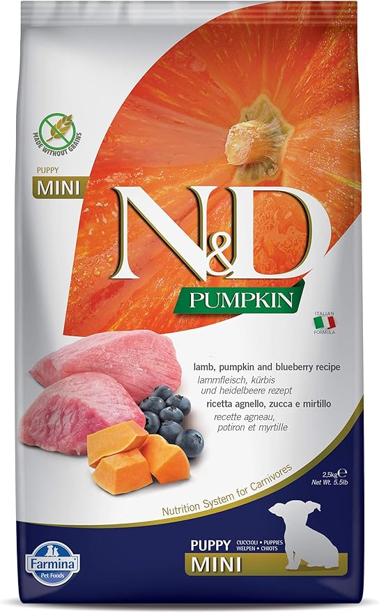 N&D Lamb, pumpkin and blueberry recipe for puppies is formulated to meet the nutritional levels established by the AAFCO Dog Food Nutrient Profiles for All Life Stages including growth of large size dogs (70 lb. or more as an adult).