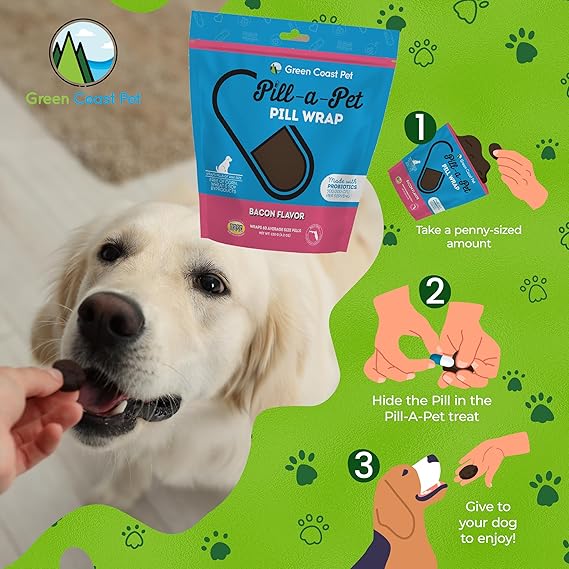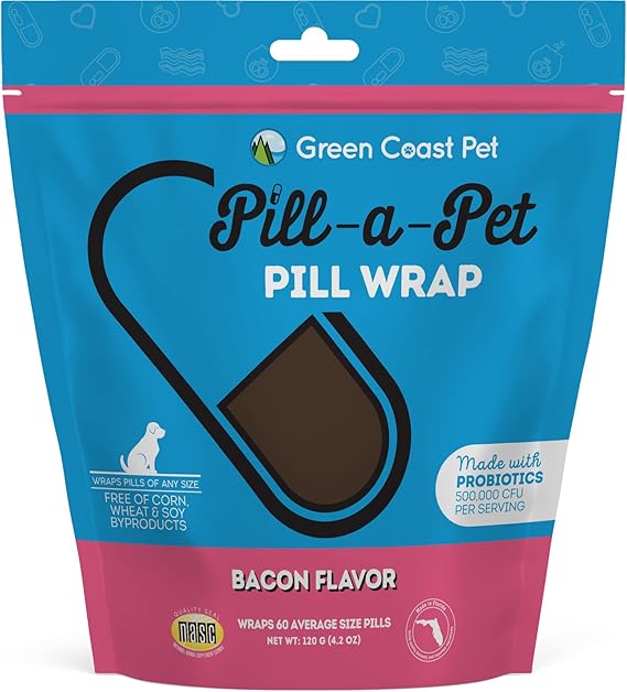 Pill-a-Pet Pill Wrap for Dogs - Made in USA - Probiotics Pet Pill Pockets for Dogs - Paste Dog Treats for Pills - Hiding up to 60 Tablets of Any Size - Digestive Support Bacon Flavor