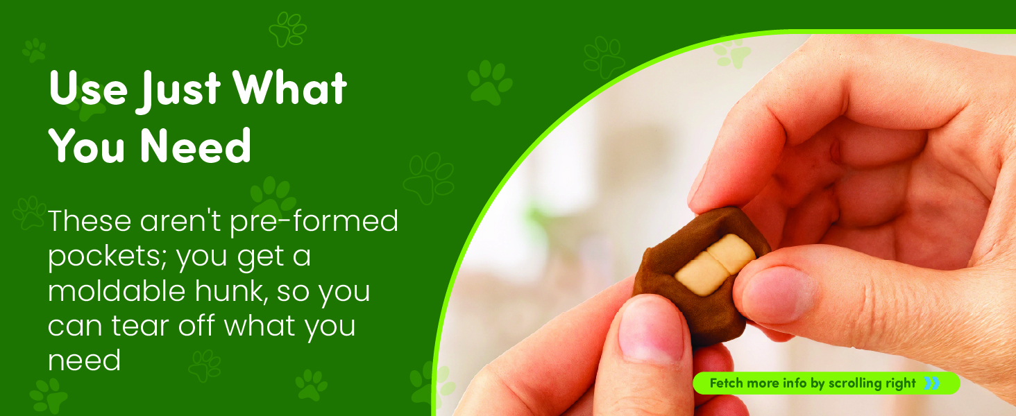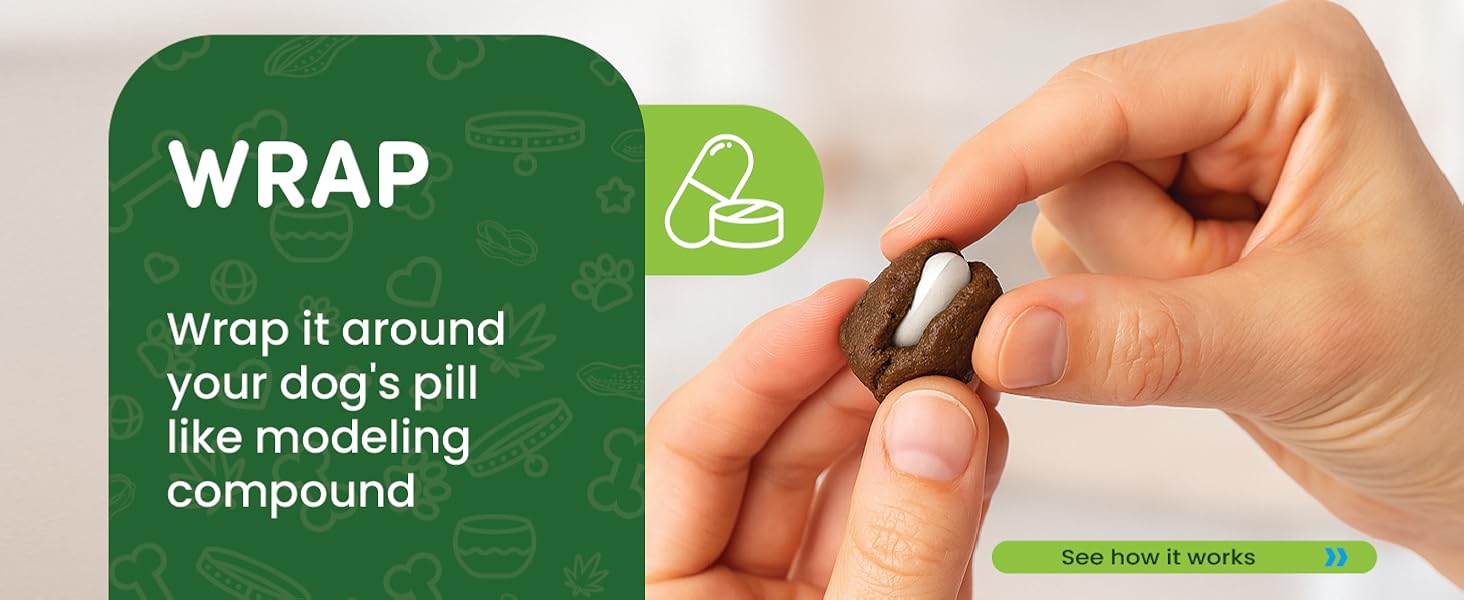 - CUSTOMIZABLE & EASY TO USE - This soft pill wrap for dogs lets you easily pinch off the perfect amount to wrap a pill for dogs of any size or breed. A mess-free, stress-free solution that outperforms traditional dog pill pockets.