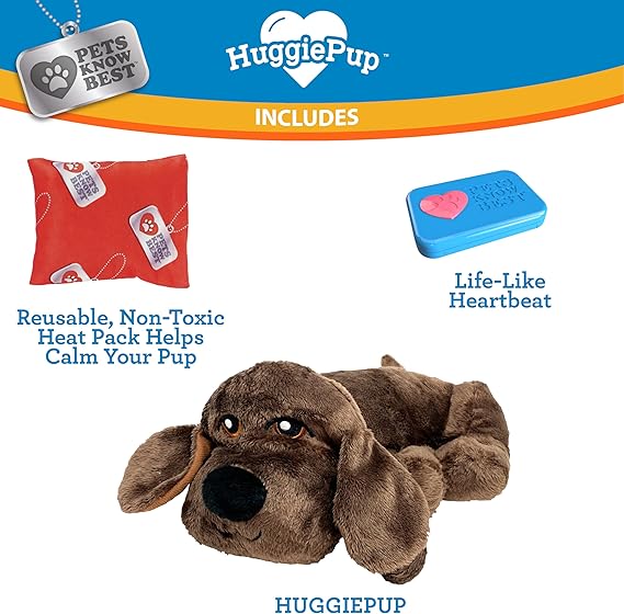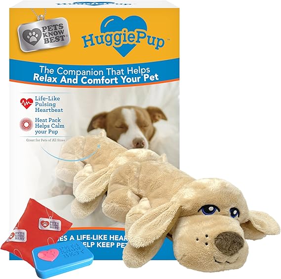 The HuggiePup is just what your pet needs to feel a sense of comfort & calmness. Designed by the pet lovers at Pets Know Best. HuggiePup uses a life-like heartbeat and warm heat pack to gently calm pets down! Helps relieve nerves and doubt with physical touch and warmth. Machine washable and easily set up to comfort your pet!