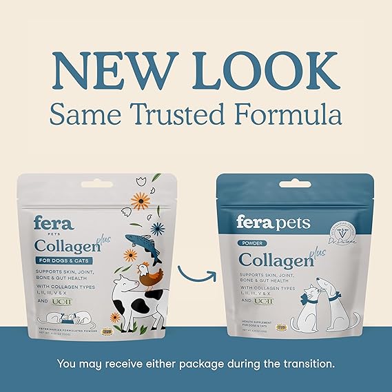 Fera Pets Cat & Dog Collagen Powder - Bone, Gut, Joint and Skin Supplement - 5 Types of Collagen + Clinically Studied UC-II® - 4.23 oz