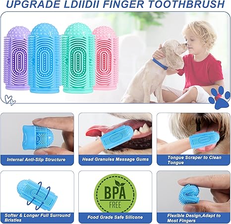 - 【Loved By pet】LDIIDII dog finger toothbrush use 2023 original look and design is cute and colorful,make pet more willing to accept.Dog toothbrush finger toothbrush for dogs will not cause irritation to the dog's mouth during use and has a good taste; dog toothbrush finger toothbrush is equipped with soft and wearable bristles,easy dog teeth cleaning,making dog dental care easier,dog tooth brushing kit loved by dogs and cats pets,pet parents no longer worry about dog teeth cleaning.