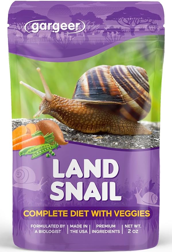 GARGEER LAND SNAIL VEGGIE is a complete diet scientifically formulated with Non-GMO OATS, HEMP SEEDS, PUMPKIN SEEDS, and a unique combination of other premium ingredients such as BLACK SOLDIER FLY LARVAE, DANDELION LEAF, DRIED MUSHROOM, and SWEET POTATO. Packed with essential vitamins and nutrients. Suitable for all land and garden snails. This diet contains NO ethoxyquin or copper sulfate.