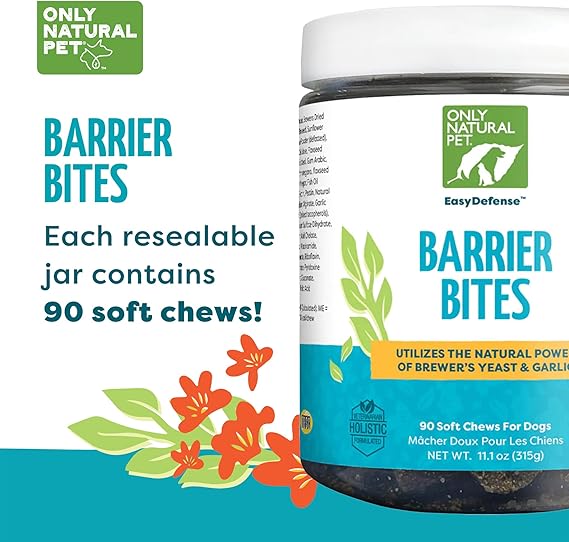 Only Natural Pet EasyDefense Barrier Bites Soft Flea Chews for Dogs - First Line of Defense Againts Fleas & Ticks, Boosts Immune System and Healthy Skin & Coat - (90 Bacon Flavored Soft Chews) 1 Pack