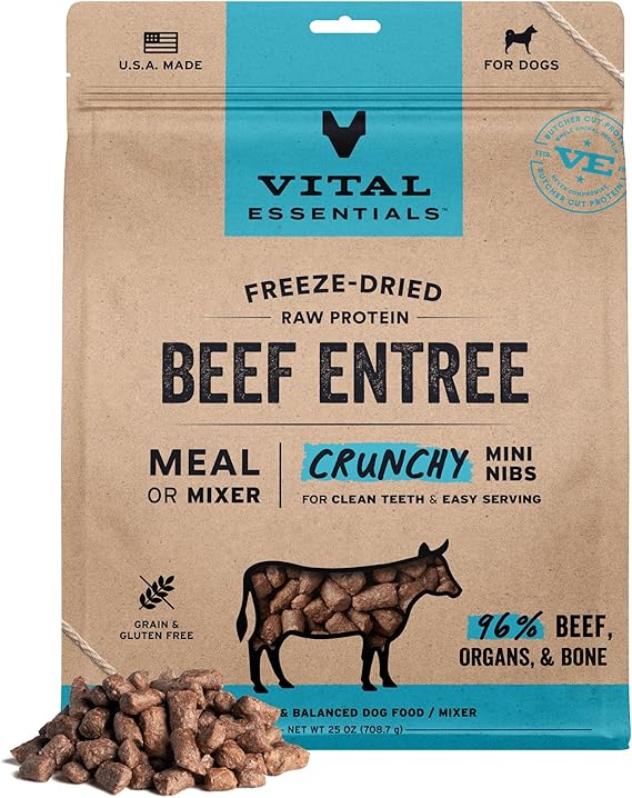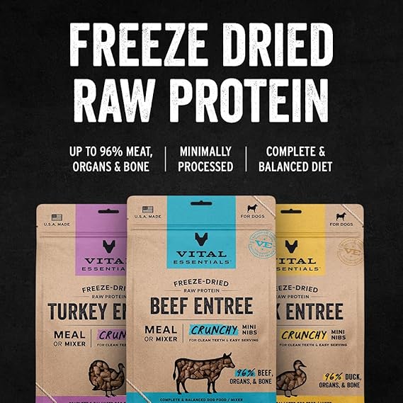 Vital Essentials Freeze-Dried Raw Turkey Meal or Mixer Dog Food Crunchy Mini Nibs, 25 oz