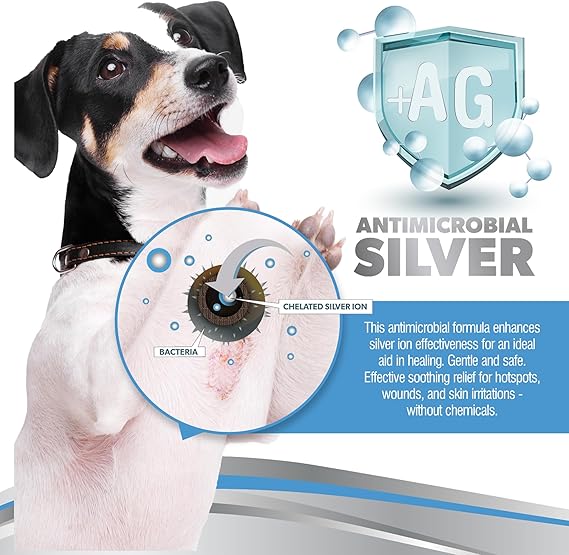 - ADVANCED SILVER TECHNOLOGY: The chelated silver in this antibacterial spray is designed for optimal particle size and even distribution to aid in healing affected skin tissue. It can be used on skin irritations to help soothe discomfort. Suitable for dogs and cats, this spray is a versatile addition to pet care.