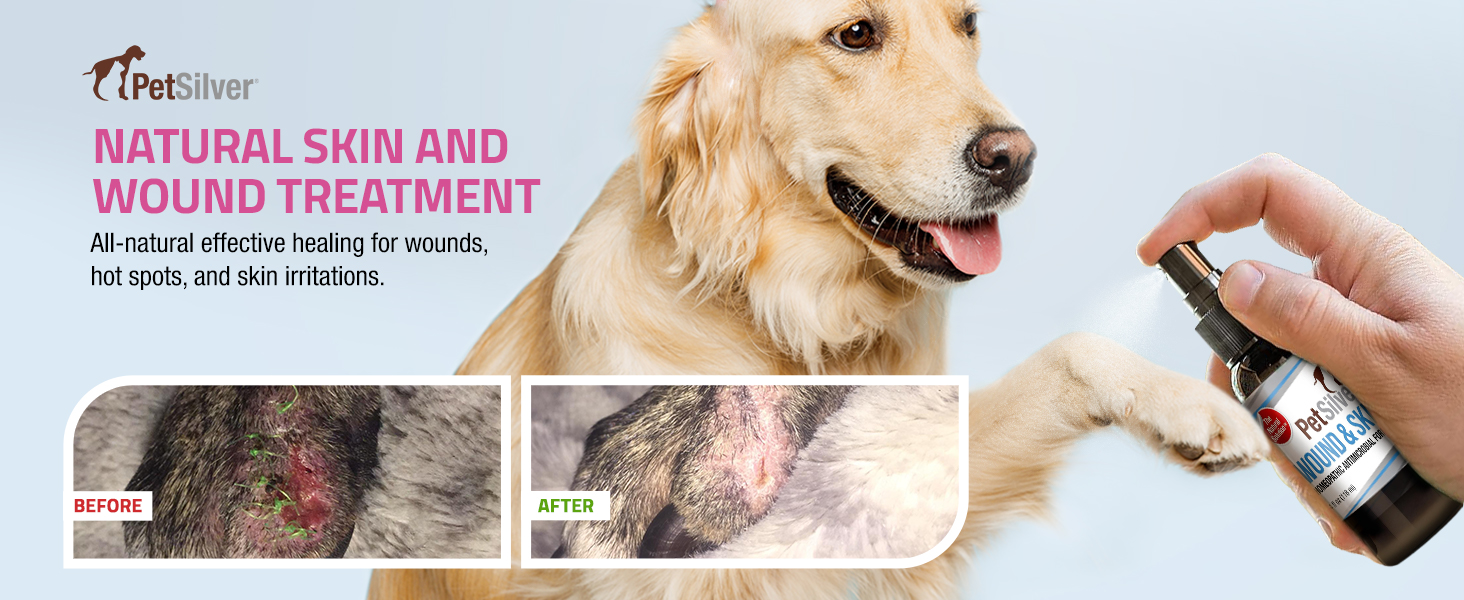 - SOOTHING RELIEF FOR PETS: PetSilver Wound & Skin Spray is designed to provide relief from hot spots, wounds, rashes, burns, and skin irritations for dogs and cats. This pet wound spray works as a hot spot spray and a wound care solution for dogs, promoting natural healing for your furry friends. Safe for use on paws, face, ears, nose, and sensitive skin areas, this dog wound spray effectively soothes itchy lacerations. For optimal results, thoroughly saturate the affected area with the sprayer.