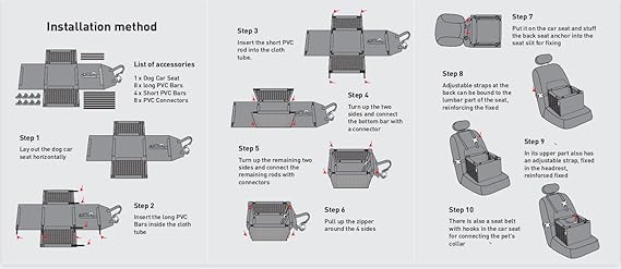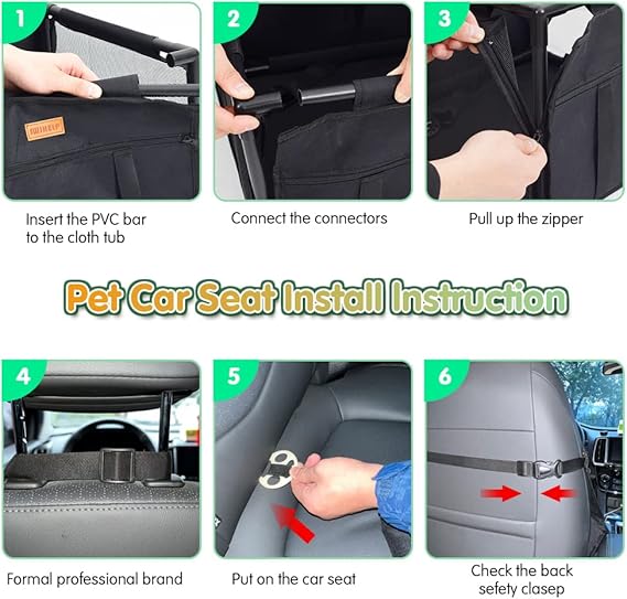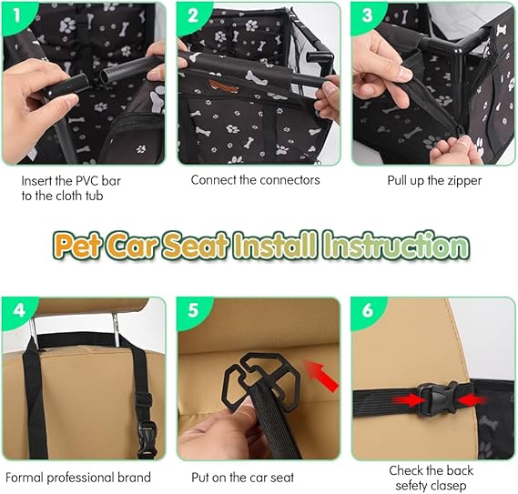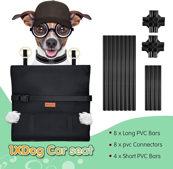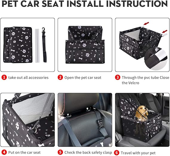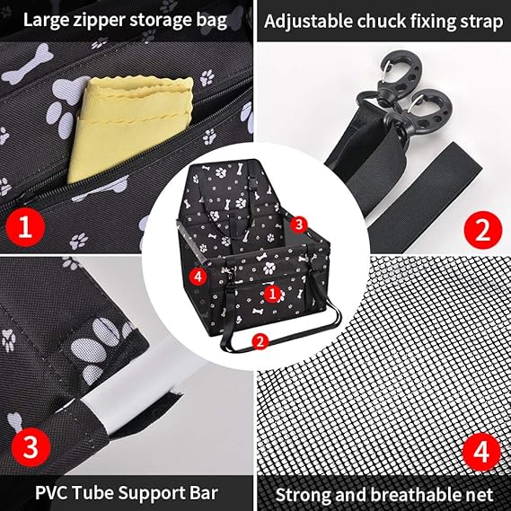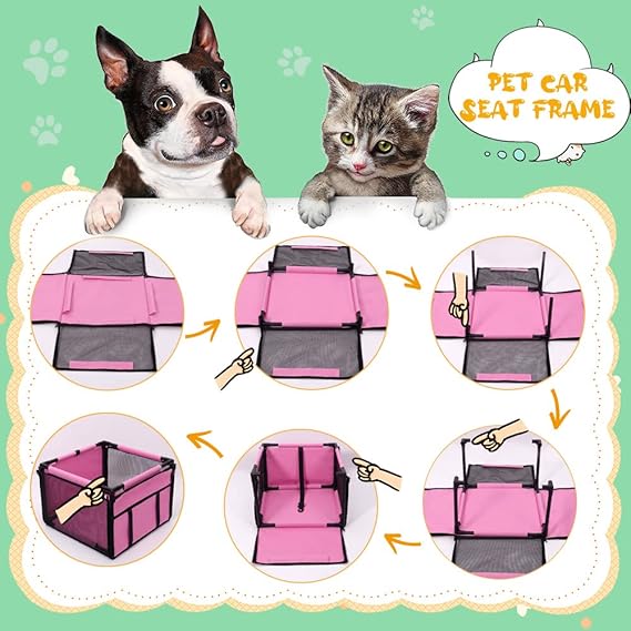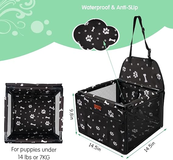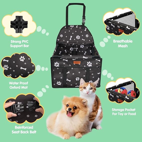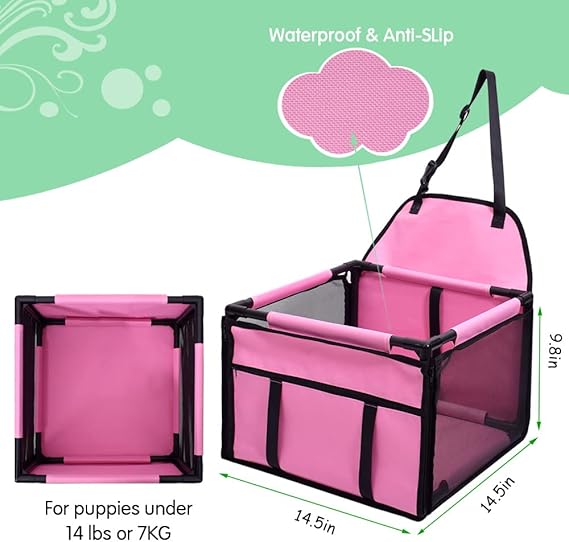 - DURABLE WATERPROOF DOG CAR SEAT- high quality dog car seat The pet puppy car booster Made of high quality waterproof 600D oxford, nylon belt, antirust D ring, PVC mesh net, The air circulating mesh design allows your pets breathe smoothly strong and durable.