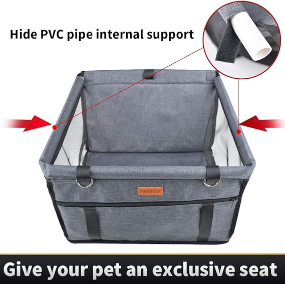 - CONCENTRATE ON DRIVING DOG CAR SEAT - The dog car seat booster design with two safety belts fix the booster seat to prevent it sliding in the car, make pet won't disturb you when you driving. Adjustable straps fit most cars, vehicles & SUV's, there is a ring to hook the dogs harness too so it wont jump out