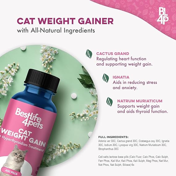 Cat Hyperthyroid & Gentle Weight Gain Support for Cats and Kittens - Natural Feline Thyroid Balance for All Ages in Odorless Easy to Use Tiny Pills That Improve Appetite, Coat & Energy (400 Pills)