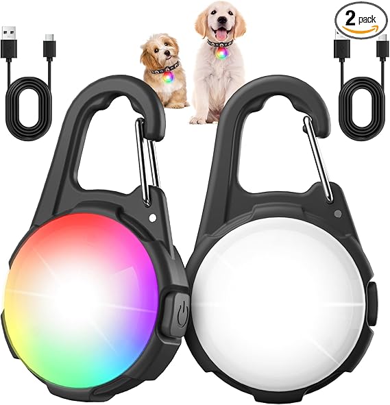 Dog Lights for Night Walking, 2 Packs LED Collar Light, 4 Modes Light for Walking at Night, Waterproof Dogs Walk Lights, Rechargeable Collar Lamp for Nighttime Clip On, for Running, Camping, Cycling