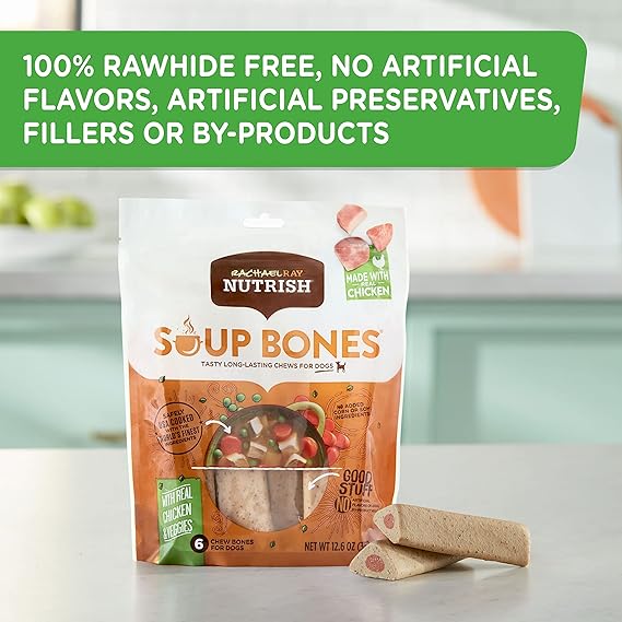 Rachael Ray Nutrish Soup Bones Dog Treats, Chicken & Veggies Flavor, 6 Bones