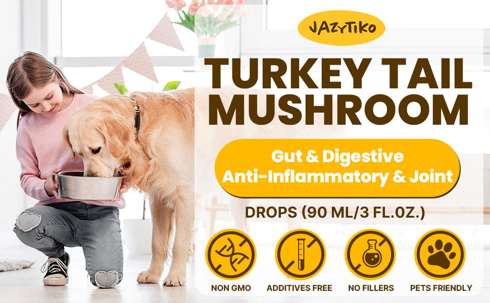 - Comprehensive Support Turkey Tail Mushroom: Our turkey tail mushroom for dogs is designed to provide holistic, natural support for your pet’s immune system and well-being. Turkey tail mushroom for dogs will help your pet to be healthy and feel great with the power of nature and a balanced composition
