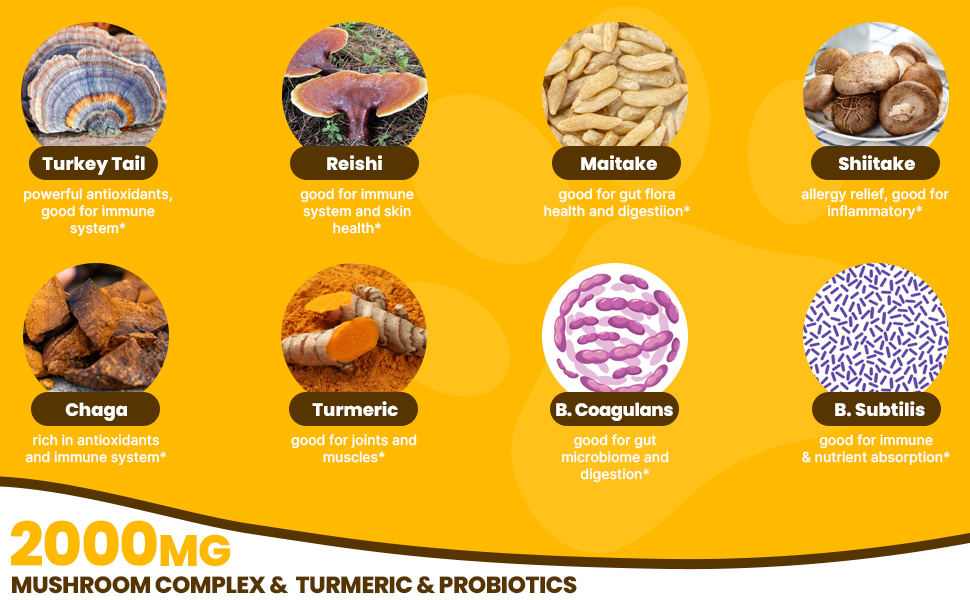 - Real Mushrooms Turkey Tail: Our proprietary mushroom blend includes 5 different types of mushrooms, turkey tail fruiting body and mycelium known for their immunity boosting properties, organic shiitake, organic chaga, organic maitake, and reishi. Care for your pet with our mushrooms for dogs plus probiotic and turmeric formula