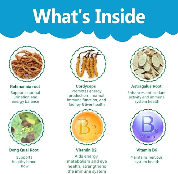 - 6-in-1 Supercharged Formula: Combines Rehmannia, Astragalus, and Vitamin B Complex for faster nutrient absorption. Targets kidney filtration, fluid balance, and energy in one daily dose.