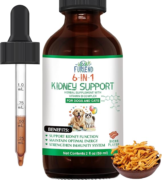 Veterinarian Formulated Kidney Support for Cats & Dogs | 6-in-1 Liquid with Herbal Blend + Vitamin B Complex | Bacon Flavor for Kidney & Urinary Health, Energy & Appetite | 2oz (59ml)