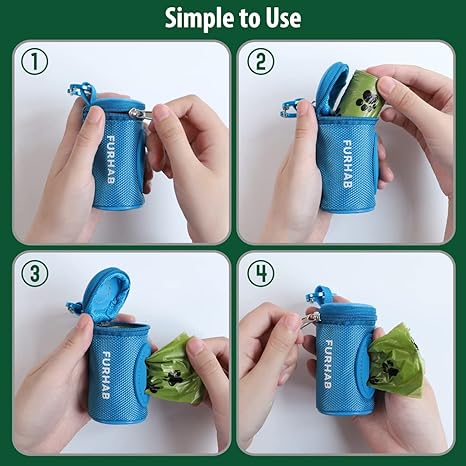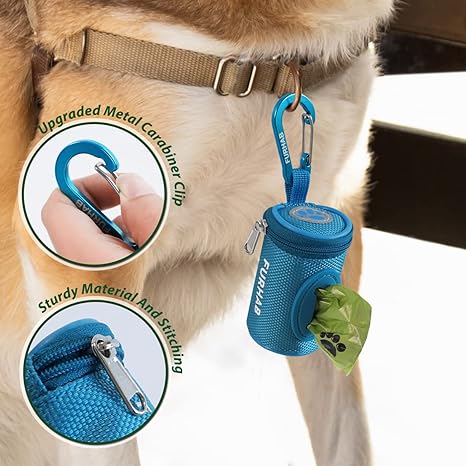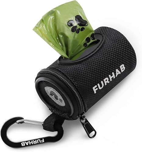 Dog Poop Bag Holder for Leash Doggie Waste Bag Dispenser Soft Fabric Puppy Potty Carrier Small Doggy Zipper Pouch with Carabiner Clip with 1 Roll of Pet Trash Bags, Black