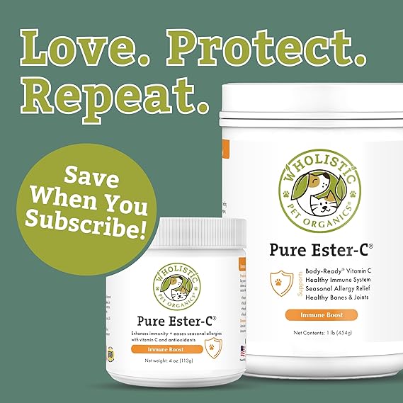 Wholistic Pet Organics Pure Ester-C Powder for Dogs - 4 Oz - Healthy Alternative to Dog Allergy Chews - Vitamin C Supplement for Dog Allergy Relief, Immune Support, Itch Relief for Dogs - Made in USA