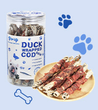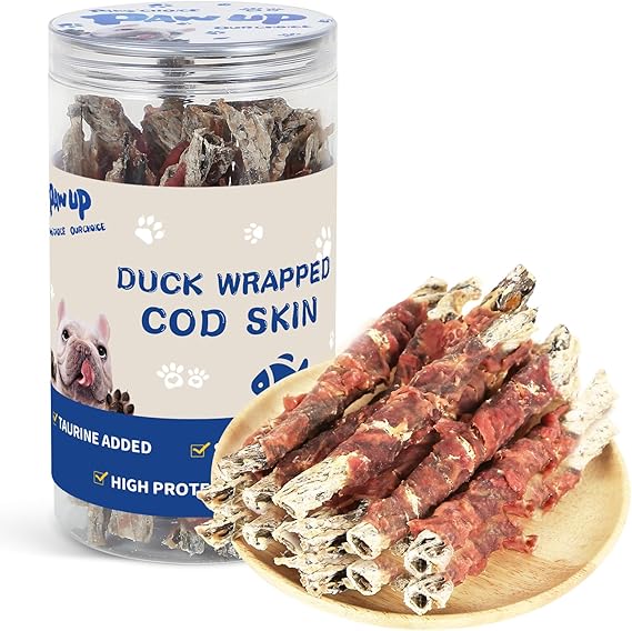 PAWUP Cod Skin Dog Treats with Duck Dog Snacks High Protein and Omega-3, Natural Dog Chews w/Taurine, 12.5 oz