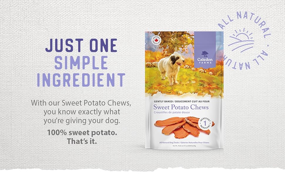 One ingredient. Natural goodness. Treat your dog to Caledon Farms Sweet Potato Chews—a single-ingredient, plant-powered snack your dog will love. Made exclusively from 100% North American sweet potatoes, these vegan-friendly chews are free from artificial additives, preservatives, grains, corn, and soy. Naturally rich in beta-carotene and vitamin A, these wholesome chews support eye health and immune function. They’re also a great source of dietary fibre and easily digestible carbohydrates, promoting healthy digestion and helping your pup feel their best. Plus, they’re a natural way for them to have fun and get their chews out. Caledon Farms is a family-run Canadian company that’s been making wholesome treats since 2006. Proudly made in our own facility, our treats are crafted in small batches with love and care in every bite. Caledon Farms - Real Bonds Grow Here™