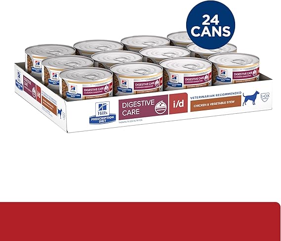 Hill’s Prescription Diet i/d Digestive Care Wet Adult Dog Food is a highly digestible, great-tasting clinical nutrition specially designed to help support digestive health and manage digestive upsets in adult dogs. Its high digestibility supports easy nutrient absorption, and it meets the nutritional needs of adult dogs.Formulated with Hill’s breakthrough ActivBiome Digestion a proprietary blend of prebiotic fibers, which is clinically shown to rapidly activate the gut microbiome to support digestive health and overall well-being.It contains added electrolytes, B vitamins, and omega-3 and -6 fatty acids. Additionally, it includes clinically proven antioxidants to help support a healthy immune system.Made in the USA with global ingredients you can trust. Developed by Hill’s nutritionists and veterinarians. Veterinarians can provide additional guidance on how Hill’s Prescription Diet products can be fed long-term to help support overall well-being.