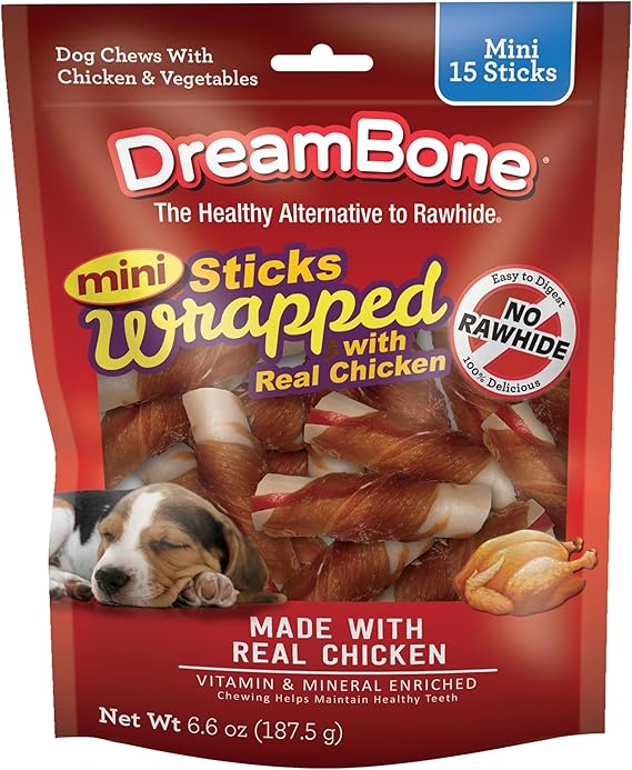 DreamBone Mini Sticks Wrapped With Real Chicken, Rawhide Free Dog Chew Sticks, 15 Count